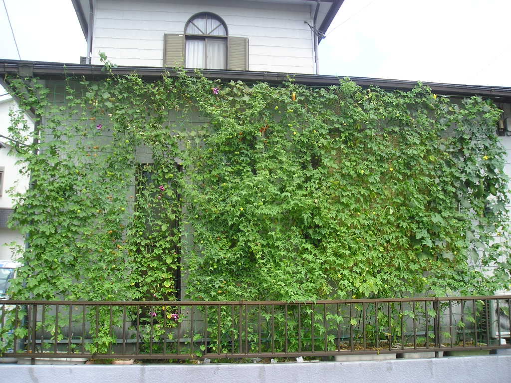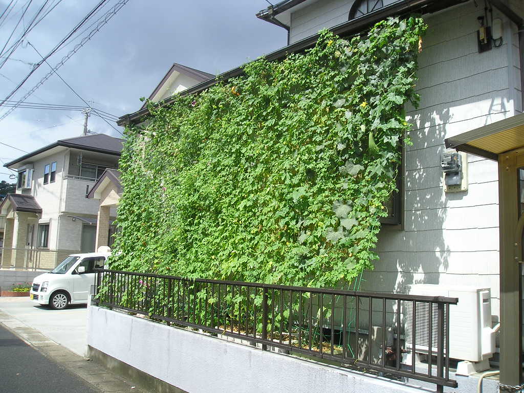節電、温暖化対策として緑のカーテンにチャレンジしました。8月に鹿児島市が「緑のカーテンコンテスト」を実施していると知り応募しました。そして先日、家庭部門の最優秀賞に選ばれたと連絡がありました。本当に驚きです。